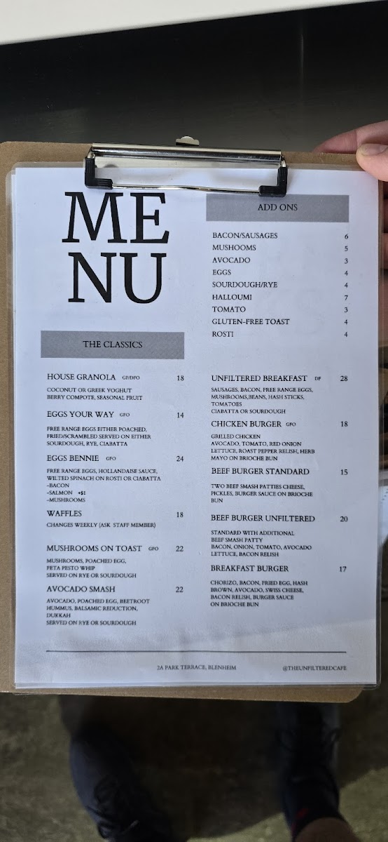 Unfiltered Cafe Menu